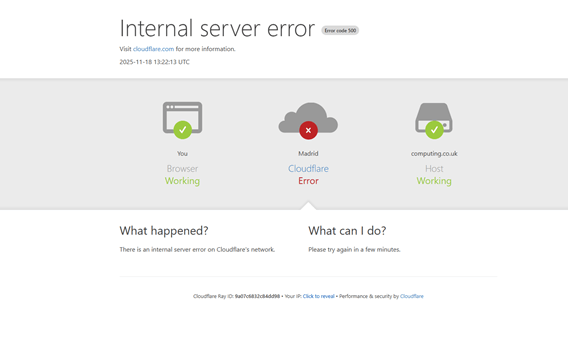 Los usuarios empezaron a ver errores “500” y páginas de fallo, muchos informes de caída (por ejemplo en Downdetector) se dispararon y sitios como X, ChatGPT, Canva, Shopify, Dropbox y otros registraron interrupciones o respuestas erráticas.
