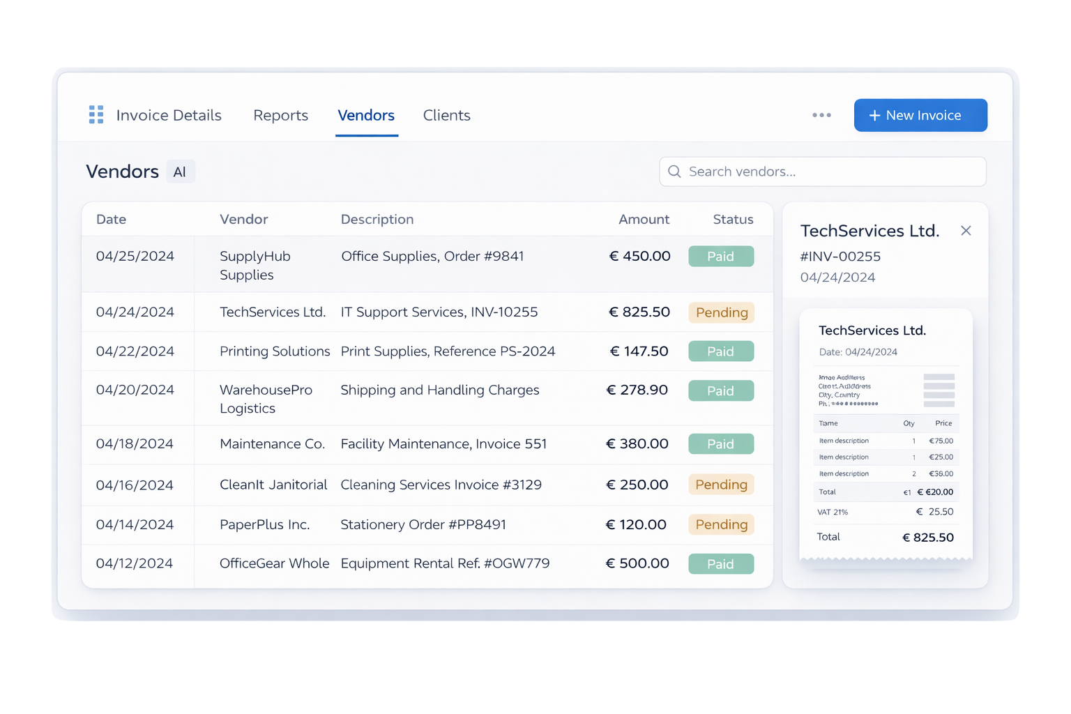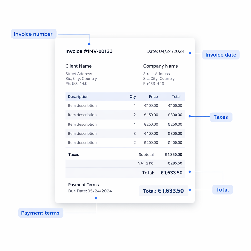 Adaptado a facturas estándar europeas.